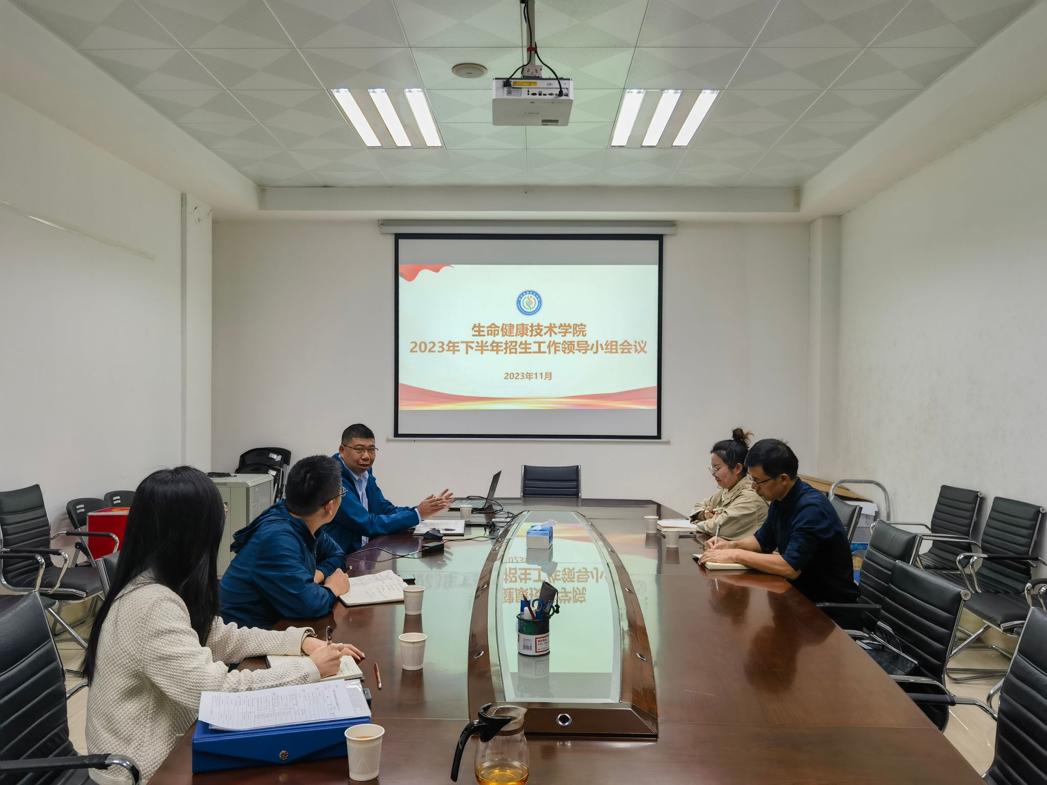 召开2023年下半年招生工作领导小组会议。学院党委书记谢炯标、党委副书记葛金虎、副院长邓见光、辅导员杨梅青、教务员刘紫瑶参与本次会议。
