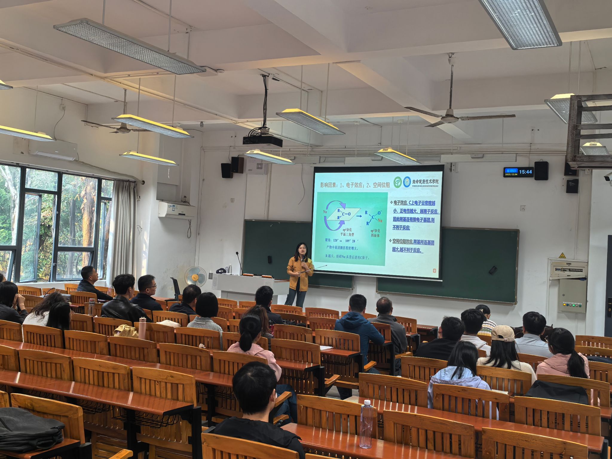 试讲环节由陈璇、王笛、朱龙超三位老师依次登台授课,分别讲授有机化学、基因学和微生物学领域的课程。通过生动的案例、清晰的逻辑以及互动式教学方式,三位教师充分展示了各自的教学风采。试讲环节结束后,与会人员聚焦教学设计、教学方法、课堂互动、课件制作等维度展开集中评议,在充分认可三位教师授课过程亮点与特色的同时,针对教学节奏把控、重难点突破、学情适配性等方面提出了具体的改进策略。